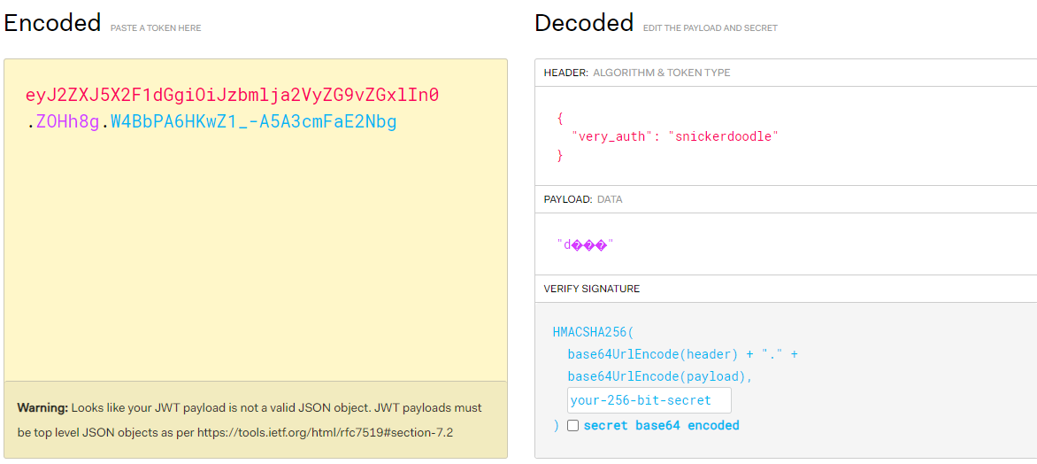 To do so we can use a website like jwt.io to decode the cookie and modify the decoded value